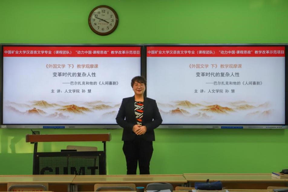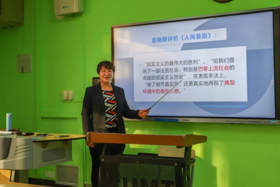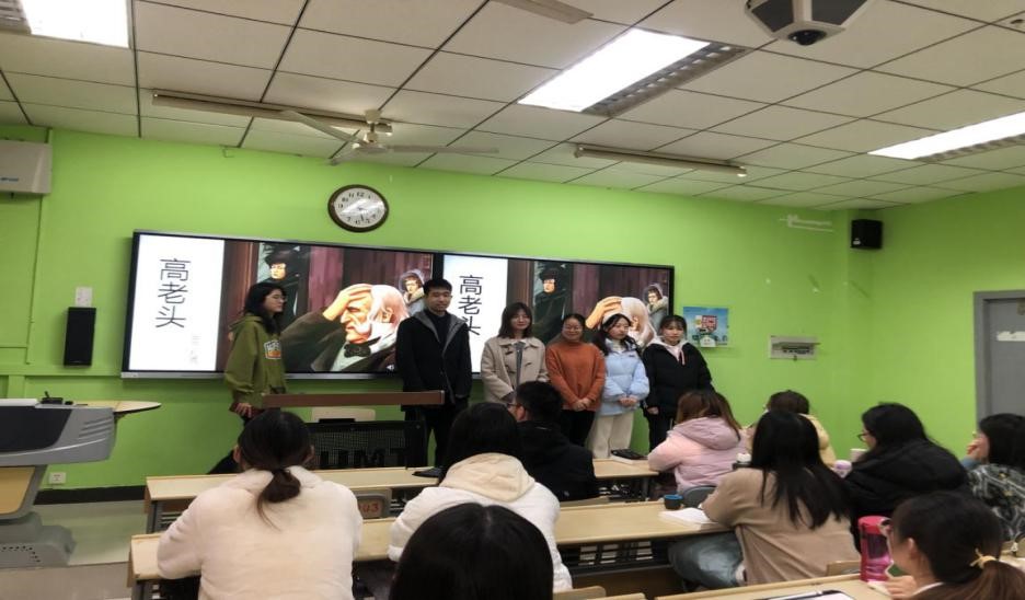 汉语文学专业课程教学团队负责人孙慧老师在博4B203举办了第二次教学观摩课,在校级课程团队“动力中国·课程思政”教学研究示范项目已有建设的基础上,融合课程团队建设的新思路,巧妙挖掘思政元素,构建高效的课程思政课堂。该观摩课主讲的是首批国家级一流本科课程《外国文学 下》的教学内容,以马克思主义文艺批评观、习近平文艺思想为指导,依托“马工教材”,课程设计突出前沿性和科学性,通过解析法国批判现实主义大师巴尔扎克小说《人间喜剧》中的《高老头》,以问题导入教学,通过启发式、合作探究、体验式等多种教学方法,用话剧演出形式演绎文学作品,引导学生提升认知美、感受美、体验美、发现美,知情意行合一。学生通过沉浸式学习体验,生动形象感知文学之美,取得较为显著的教学效果,同时也充分展示课程思政教学团队教改项目建设的成果,供老师们交流、学习和借鉴。