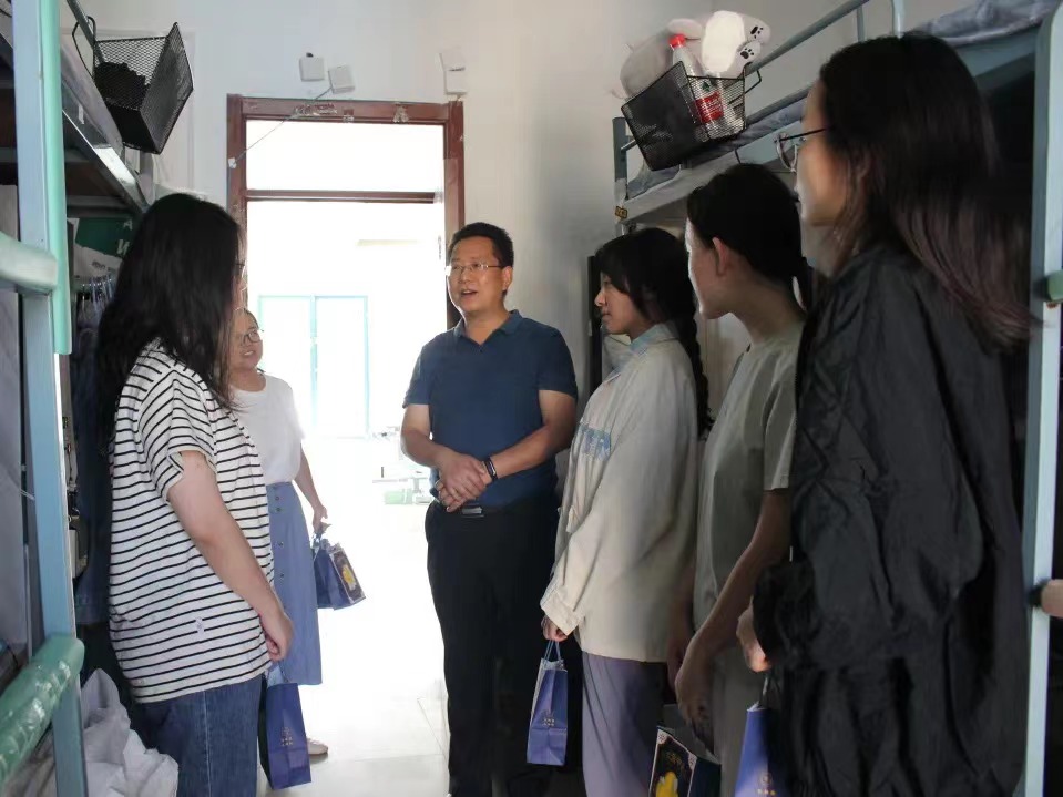 副书记刘宁、班主任姚佳慧和辅导员张瑞亭走访新生宿舍