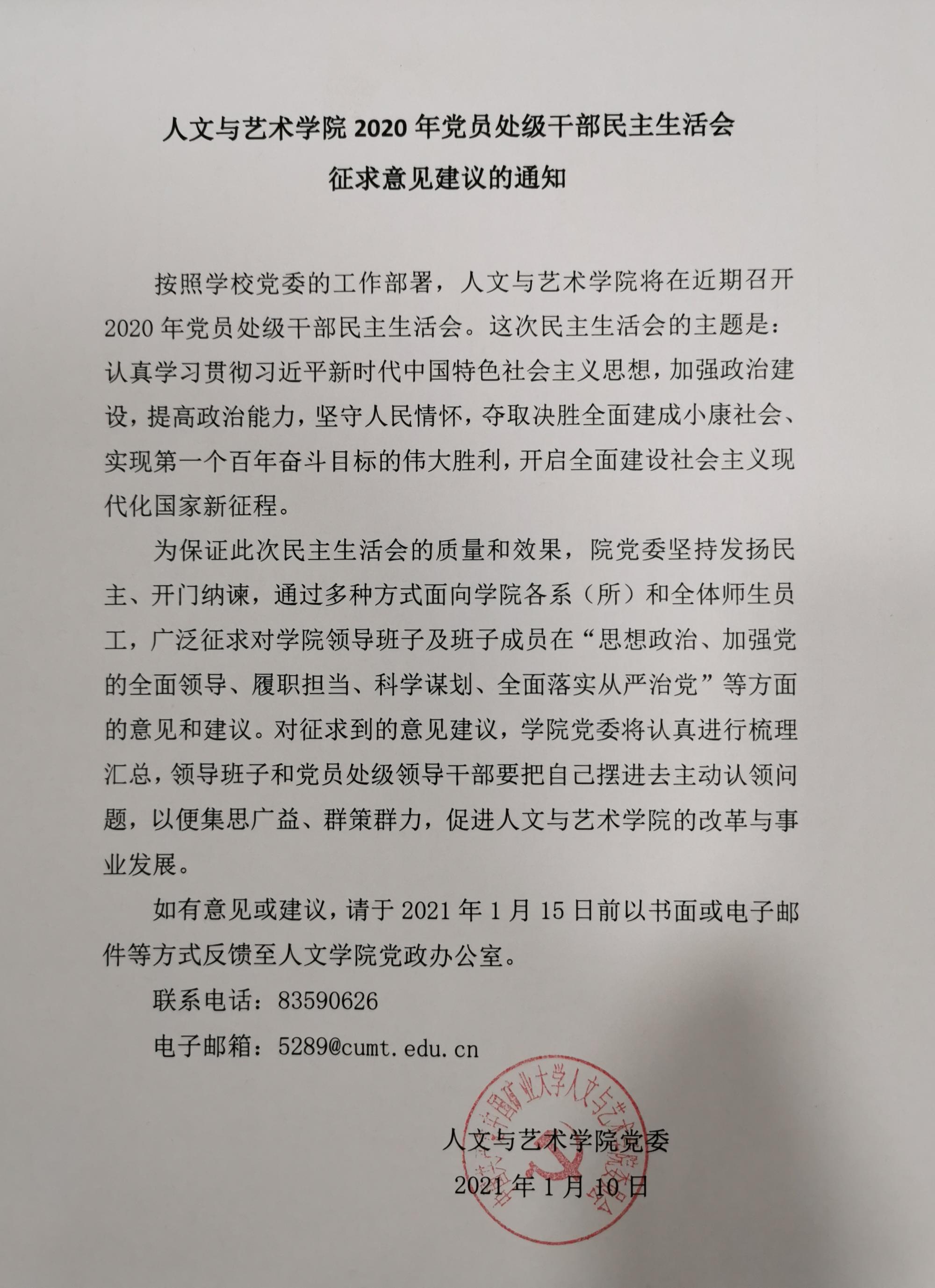 主播色情 2020年党员处级干部民主生活会征求意见建议的通知