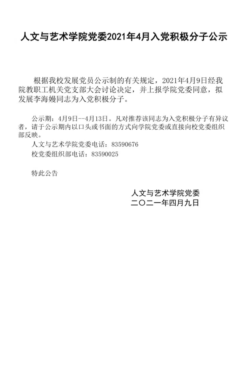 主播色情 党委2021年4月入党积极分子公示