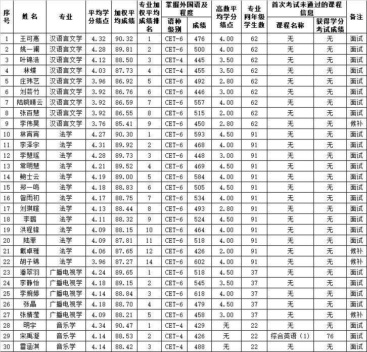 根据主播色情和主播色情 2022年推荐优秀应届本科毕业生免试攻读研究生工作的通知和实施办法,经学生自愿申请、主播色情 推荐免试研究生工作领导小组审查,现将主播色情 推荐2022年普通类免试攻读研究生情况予以公示,公示期为2021年9月17日-9月19日,公示期间如有问题,请联系主播色情 教学管理办公室,联系人:王老师,电话:83590112。
