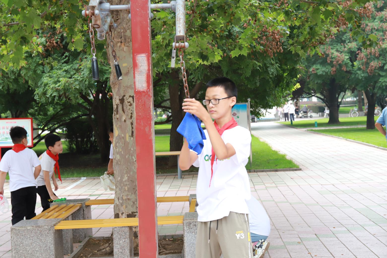 8月27日8时,河北省唐山市乐亭县第四实验小学组织学生在青春广场举行了打扫广场卫生的志愿活动。