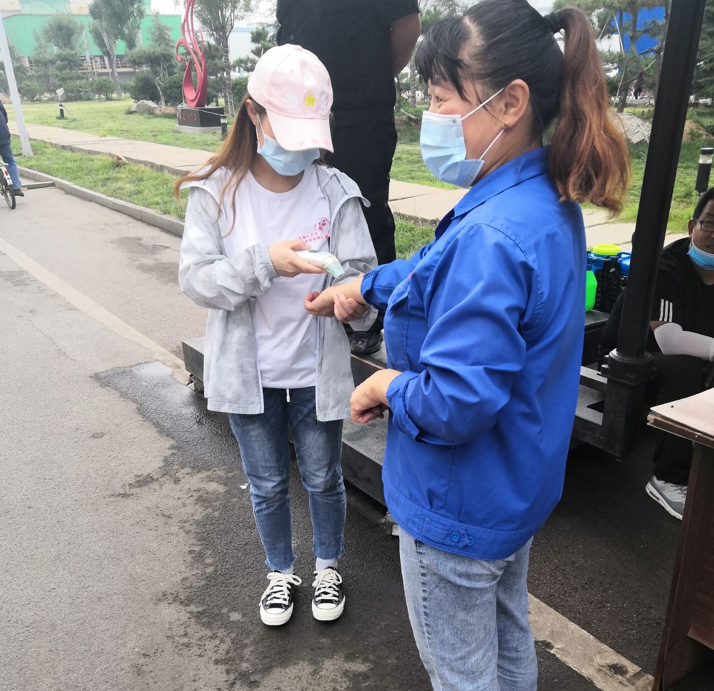 李慧瑶同学的实践任务是在一线帮助工人测量体温,协助值班人员做好体温测量与记录,严格把控外来人员进入并做好防疫宣传。在实践过程中,严格遵守企业防疫规定与程序,把职工的生命安全放在第一位,为莱芜区的复工复产献出自己的一份力量。