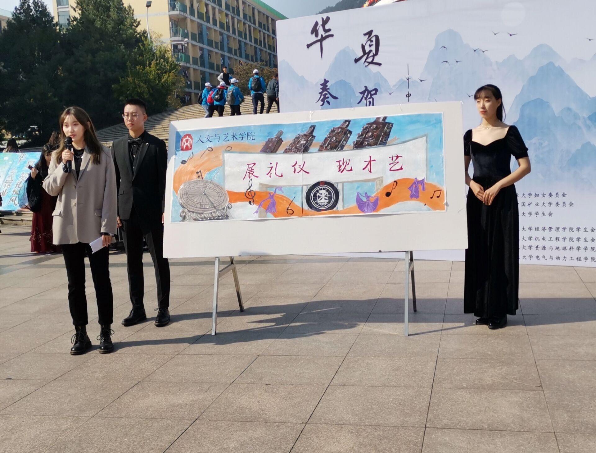 在二食堂广场举行了“华,奏盛邦曲;夏,贺礼仪风”第十二届礼仪文化月活动开幕式。