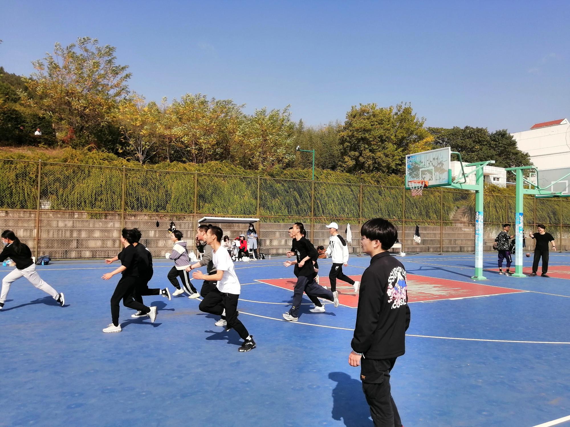 9时,大一三分赛准时开赛,参赛选手们全力以赴投出每一球。一轮的比拼之后,占优势者进行二轮比拼,并角逐出最终赢家。随后,公共管理类四班对七班、三班对八班、五班对六班的班级对决赛同时进行。每一位参赛者都为了班级荣誉积极奋战,一次次对抗争夺将比赛不断推向高潮,同学们的呐喊也随着白热化阶段的到来此起彼伏。最后,随着裁判的哨声响起,三个优胜班级在激烈往来中后终于诞生,等待之后新一轮的比拼。