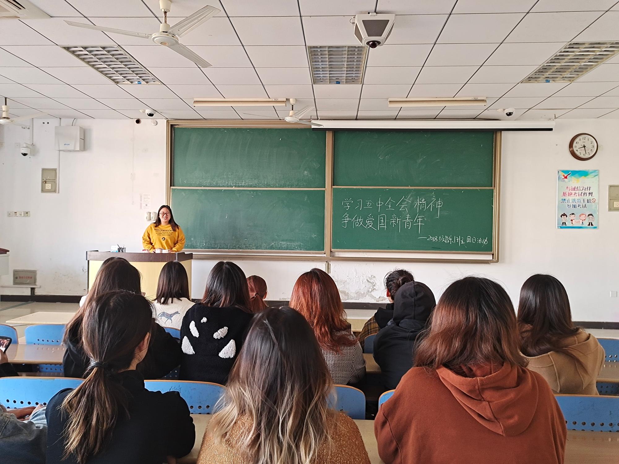 音乐学18-1班团支部在博学楼1A504根据同主题团日活动举行了“学习五中全会精神,争做爱国新青年”主题班会。本次会议由组织委员臧捷含组织,团支书韦紫奡主持,班级成员全员参加。