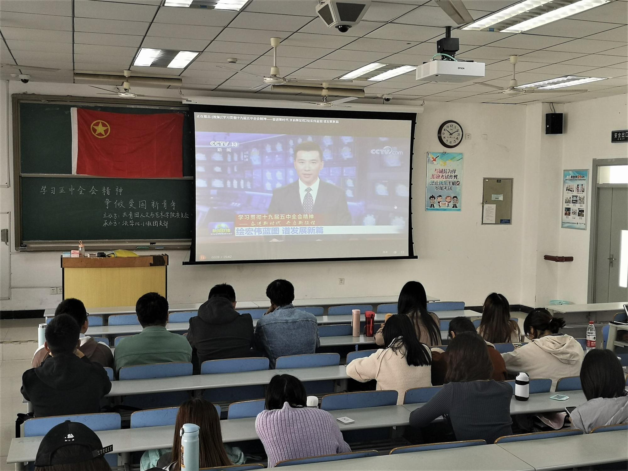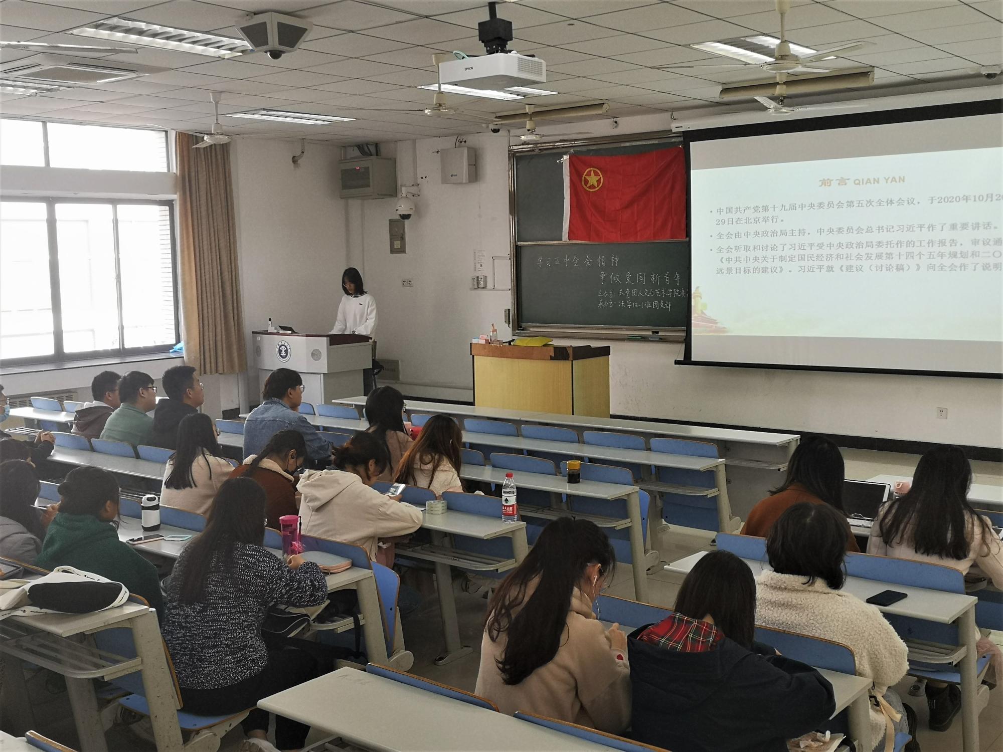 首先,团支书刘潇潇同学向大家介绍了党的十九届五中全会的概况,随后组织大家观看了党的十九届五中全会的相关报道,视频结束后,团员们展开了热烈的讨论,多位同学深入思考,踊跃发言,提出了自己的见解和想法。接着,团支书刘潇潇为大家讲解了十九届五中全会内容的重点内容,剖析我国的环境变化,展望了我国的未来发展。同时强调,实现“十四五”规划和二〇三五年远景目标,必须坚持党的全面领导,充分调动一切积极因素,形成推动发展的强大合力。最后,团支书刘潇潇和大家分享了全会公报的关键词,并对本次作出了简单总结。本次团日活动顺利结束。