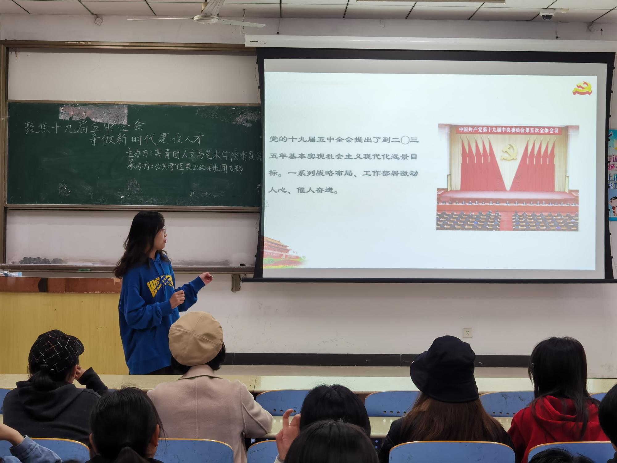 公共管理类20级6班团支部于博1A102教室举行了以“聚焦十九届五中全会,争做新时代建设人才”主题的第一次团日活动,本次会议由团支书王莘童主持,各团支部成员到场参会。