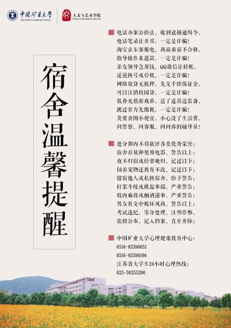 号召,在过去两周收集整理了“警惕诈骗,安全用电”的相关知识,将其设计制作成“宿舍温馨提醒”海报,并于3月19日在主播色情
