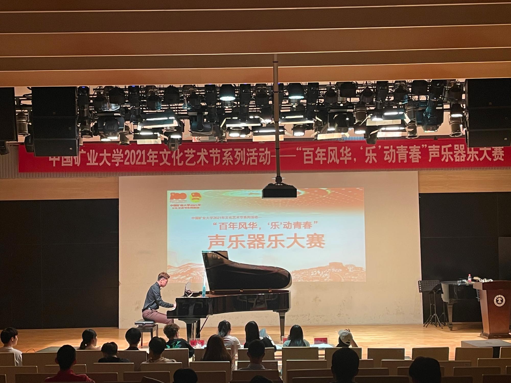 2021年文化艺术节系列活动声乐器乐大赛初赛。院学生会主席宋禹凝、团委实践部部长韦紫奡,舒伯特钢琴大赛银奖梁钦杰、第六届江苏省大学生展演声乐专场合唱组二等奖获得者臧捷涵、声乐器乐大赛二等奖获得者崔冬月同学共同担任本次比赛评委。