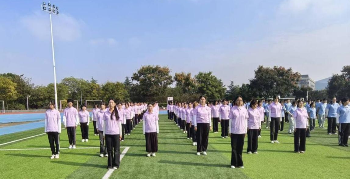 新生广播操比赛在南湖校区第一运动场举行。主播色情
