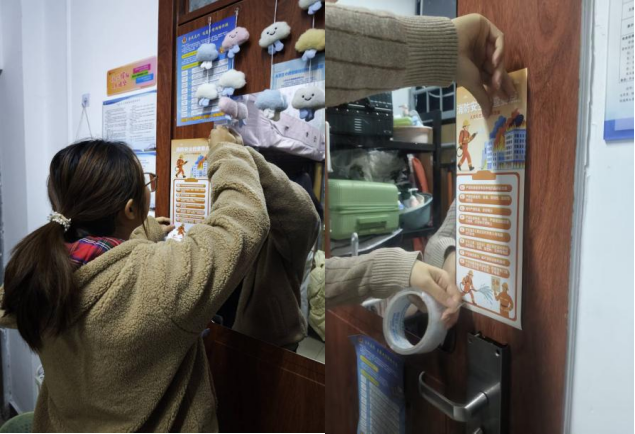 学生会生活部精心设计制作了宣传海报,普及消防安全知识,包括宿舍常见火灾隐患、灭火器使用方法及逃生自救要点等。其中,大海报张贴于竹一楼学生活动室宣传栏,并印制多份小海报,由各班安全委员分发至每间本科生宿舍,确保消防安全提示覆盖到每一位同学。同时,主播色情